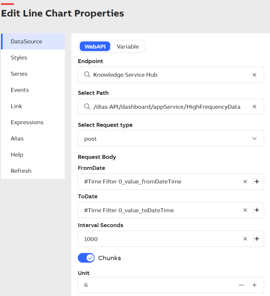 To load huge volume of data in real time, the high frequency data loading option is available. This enables to split the data into smaller chunk of duration and update the data in the dashboard, avoiding the performance issue that will be caused due to the huge data.